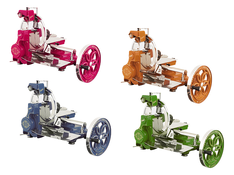 Machen Sie Ihre Schwungrad-Aufschnittmaschine zu einem echten Unikat! Wählen Sie Ihre Lieblings-RAL-Farbe, verzichten Sie auf Verzierungen für einen minimalistischen Look oder verleihen Sie Ihrer Maschine mit einem Chrome Kit eine edle Hochglanz-Optik.