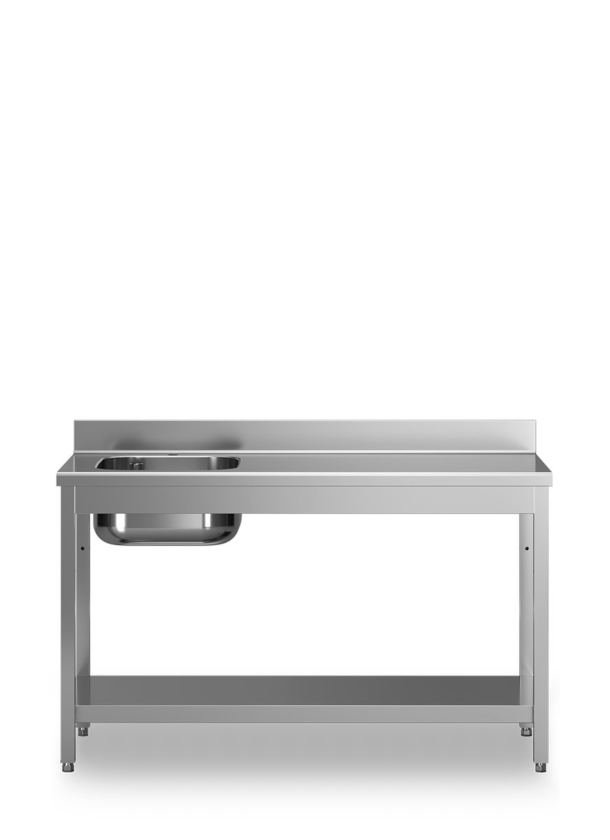 Arbeitstische mit Becken rechts - Ablageboden - Aufkantung - 700mm Tiefe - 2000mm Länge