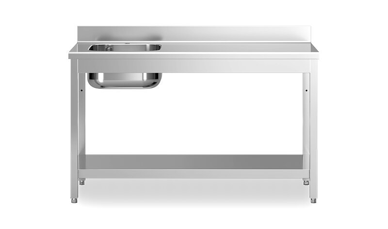 Produktinformationen "Arbeitstische mit Becken rechts - Ablageboden - Aufkantung - 700mm Tiefe - 2000mm Länge"