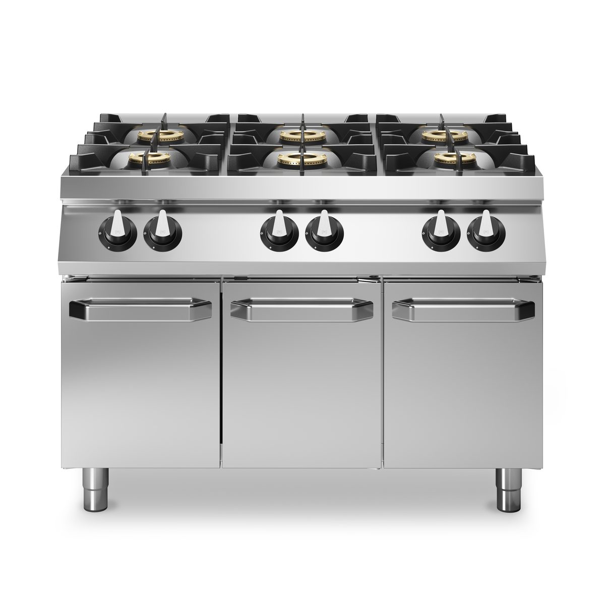 Gepresste ROC 90/120 6-Flammen-Gasherdplatte 52 kW Fach mit Türen — 52 kW Anschlussleistung.