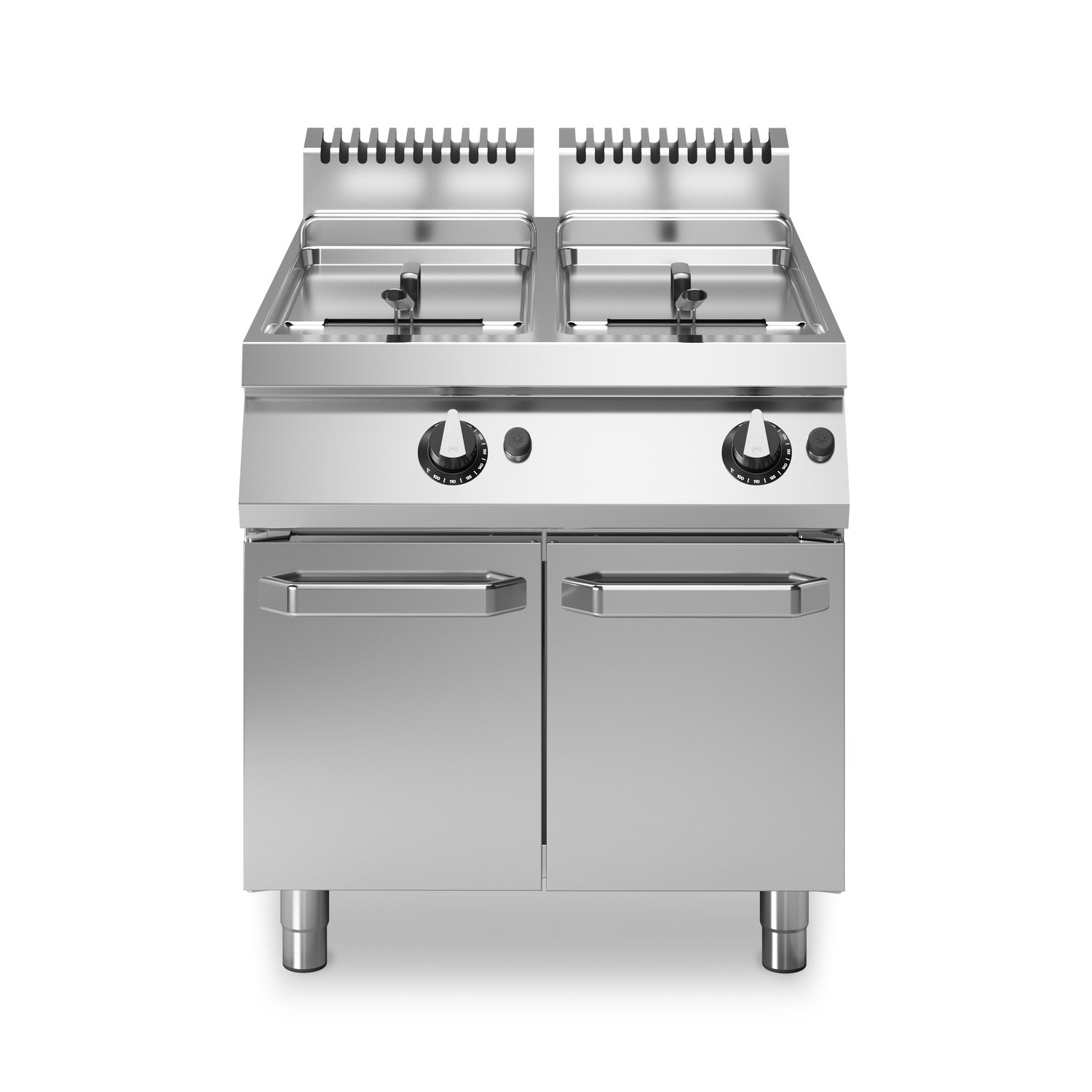 ROC 110/80 2 Tank-Gasfriteuse 22+22 Lt Brenner 40 kW Fach mit Türen — 40 kW Anschlussleistung.
